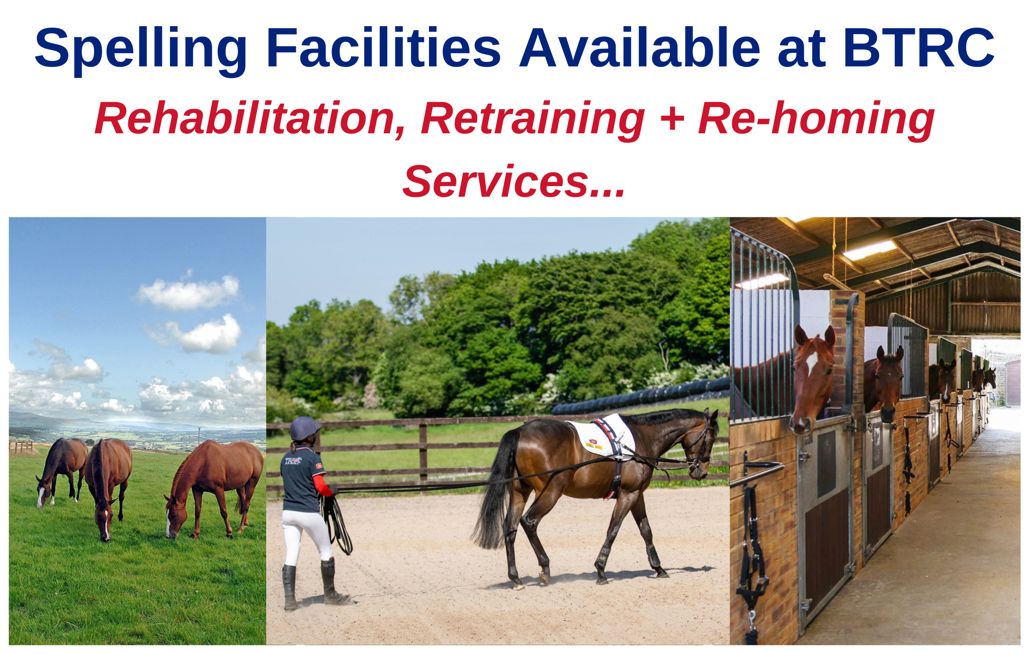 If you are looking for options for your Thoroughbred, or you have been struggling with your retraining, then please check out the BTRC’s spelling facilities. We have recently added rehabilitation and retraining services to the spelling package.