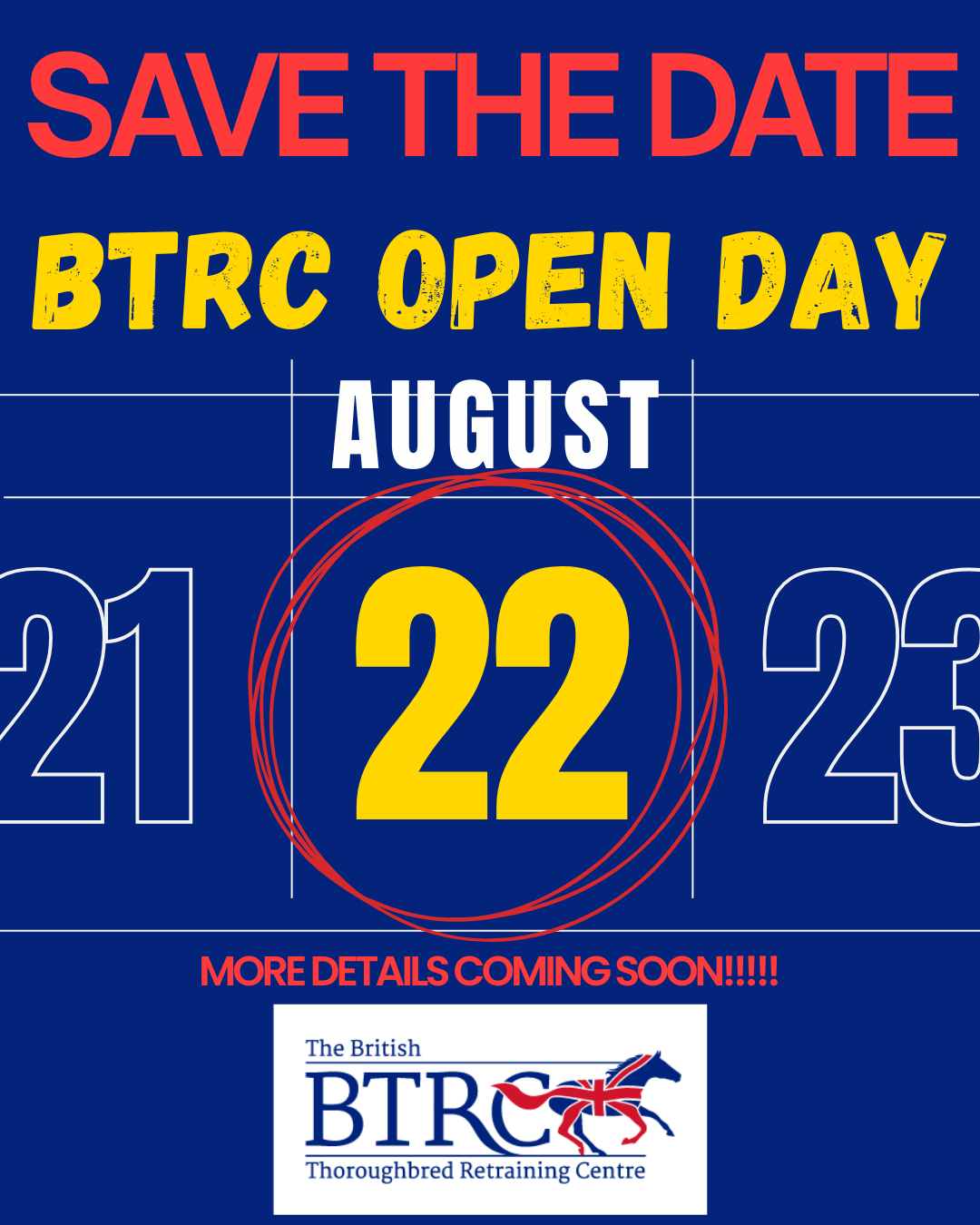 BTRC OPEN DAY 2026 SAVE THE DATE! BTRC Open Day – 22nd August 2026 We’re celebrating our 35th anniversary, and we want to see as many of our supporters as possible! It’s going to be a very special day, so please share and spread the word. More details coming very soon! Share this: Click to share on X (Opens in new window) X Click to share on Facebook (Opens in new window) Facebook Related