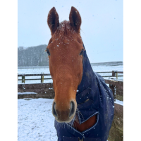 BTRC Viper relaxing on a frosty winters morning. Printing kindly sponsored by The Jockey Club to enable all proceeds to support the BTRC Vulnerable Horse Programme.
