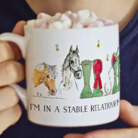Add some country style to your kitchen with our horse lovers’ welly boot mug. This unique design features everything horse riding and the message “I’m in a stable relationship”