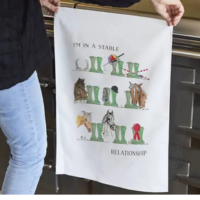 Another perfect riding gift for the horse-mad crowd from, This white cotton tea towel features our classic watercolour welly boots with various riding