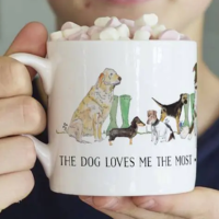 With lots of adorable doggy illustrations from Labradors to dachshunds and the words “the dog loves me most”, this mug is the perfect gift for a dog lover. Whether you’re